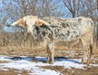THIS IS ANDREW'S HEIFER. SHE WAS BORN RED AND WHITE BUT HAS TURNED GRULLA. SHE FROZE SEVERAL INCHES OFF OF BOTH SIDES OF HER HEAD BUT WILL STILL BREED WELL.